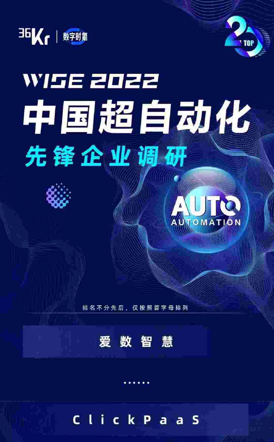 8月10日,,,由36Kr主办的WISE 2022中国超自动化峰会在杭州成功举办。。。。圆梦钱包作为国内低代码PaaS平台的领军企业,,,凭借过硬的技术实力和优质的产品能力,,,在本次峰会中实力入选「2022年中国超自动化先锋企业」20强。。